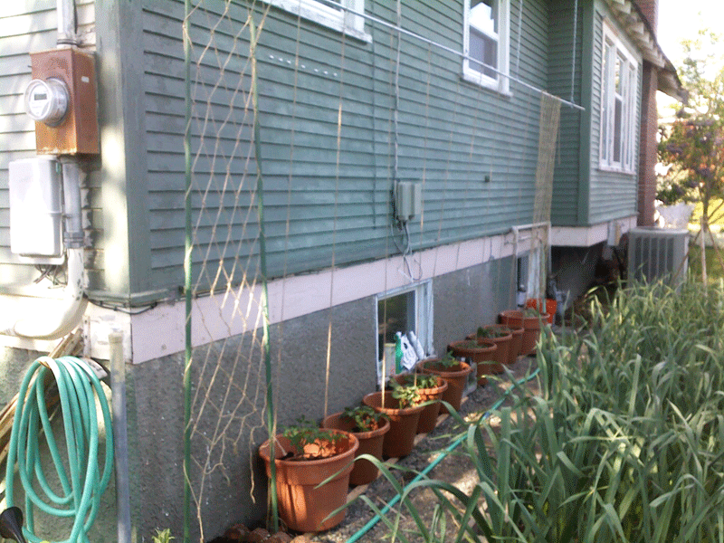 Vertical tomatoes (along the house) have done really well. I might select different plants to put there next year, but the different between these tomatos and the ones located along the fence line are substantial.